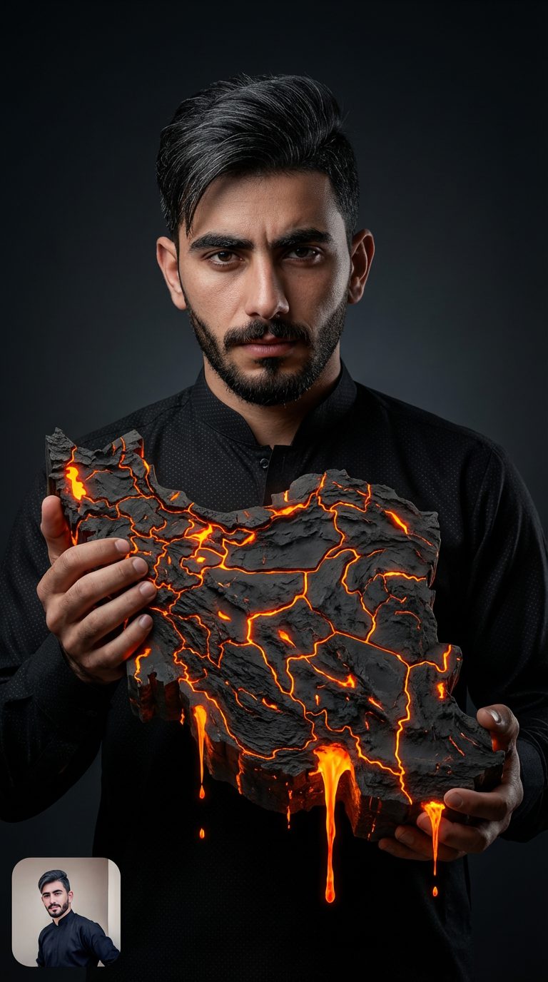 این پرامپت یک شاهکار مهندسی در دنیای هوش مصنوعی مولد است که فراتر از یک دستور ساده عمل می کند؛ این ابزار، توانایی درک عمیق “بافت” و “نور” را به نمایش می گذارد. با استفاده از این پرامپت، هوش مصنوعی قادر است تصویر خام و ساده ی چهره ی کاربر را دریافت کرده و آن را با دقتی خیره کننده در دلِ یک سناریوی حماسی و احساسی جاسازی کند. جایی که هوش مصنوعی تضاد میان لطافت چهره و سختی سنگ یا حرارت گدازه ها را با استادی تمام رندر می کند و خروجی نهایی را نه شبیه به یک ادیت فتوشاپی، بلکه مانند یک شاتِ سینمایی از یک فیلم بیگ پروداکشن تحویل می دهد.