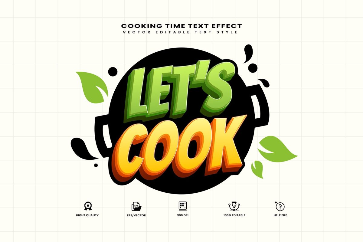 افکت متن سه بعدی آشپزی سبز و نارنجی
