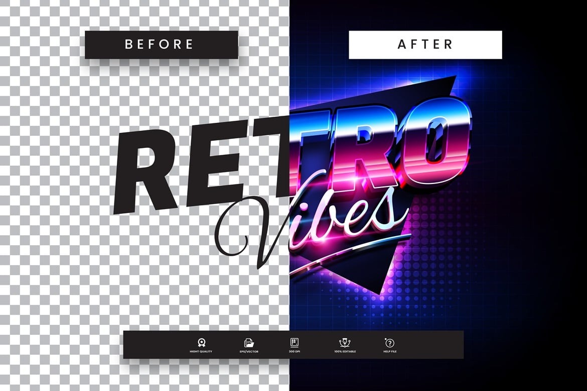 دانلود افکت متن سه بعدی Retro Vibes: جلوه ای نئونی و متالیک برای ایلاستریتور