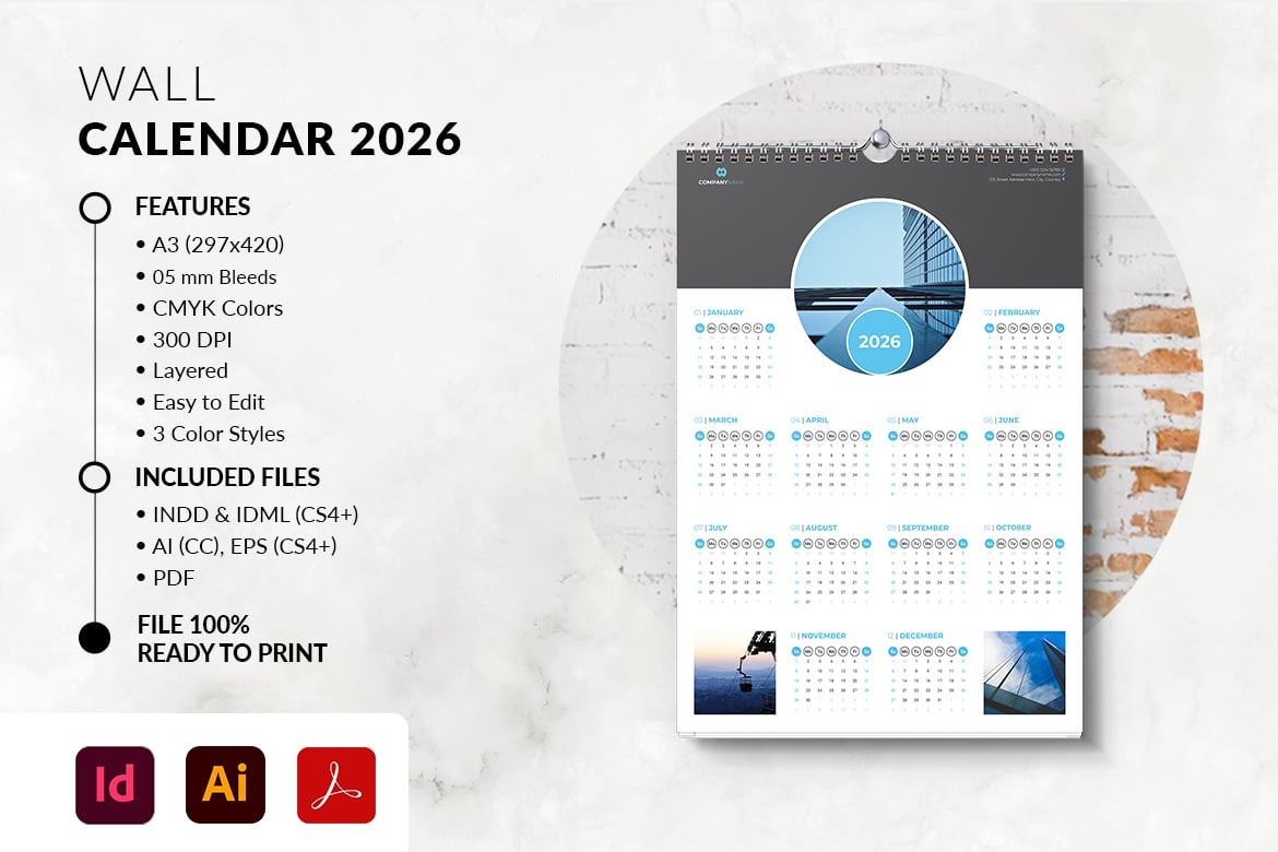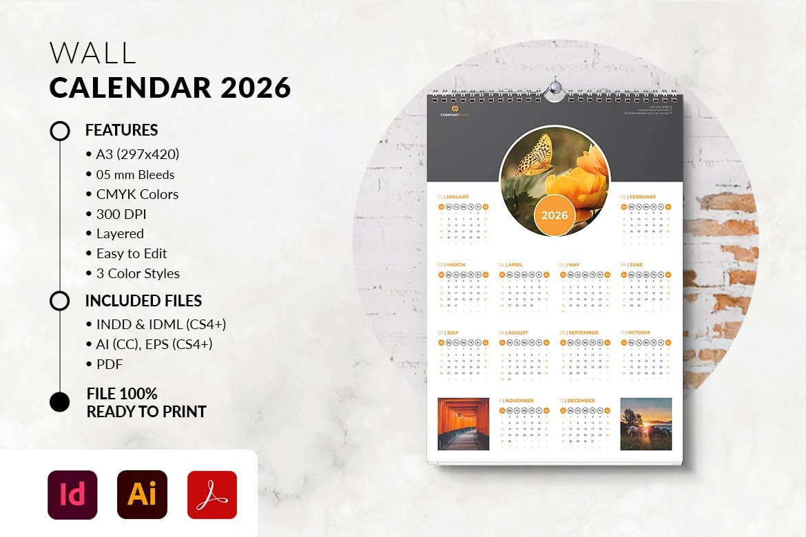 طرح لایه باز تقویم دیواری ۲۰۲۶ با توجه به فرمت های متنوع و قابلیت ویرایش بالا، در نرم افزارهای گرافیکی مختلفی کاربرد دارد:
