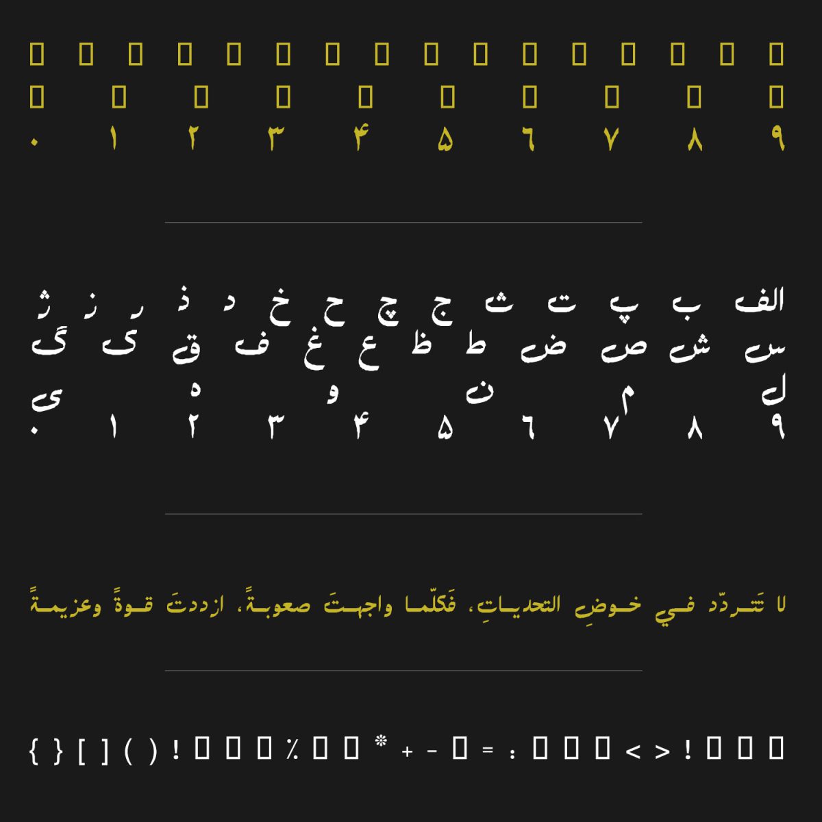 فونت مجاهد دارای ساختاری فانتزی است و با حالتی خاص خود، می تواند جلوه زیبایی به طرح های شما ببخشد و آن ها را از سادگی خارج کند. این فونت با کیفیت بالای طراحی ساخته شده و توصیفاتی مانند مدرن و کاربردی، و حرفه ای و زیبا برای آن به کار رفته است که نشان دهنده استانداردهای آن است.