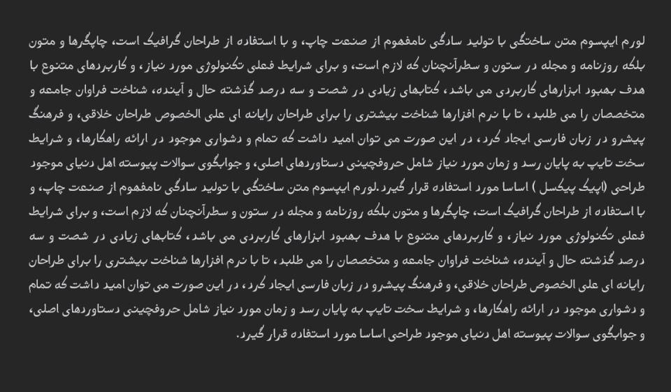نسترکیب، با وجود ظاهر مدرن، به اصول خوشنویسی فارسی نیز وفادار است. این فونت، تعادلی بین سنت و مدرنیته ایجاد کرده و حسی دلنشین و آشنا را به مخاطب القا می کند. این ویژگی باعث می شود نسترکیب برای طیف وسیعی از کاربردها، از طراحی گرافیک گرفته تا تایپ متون ادبی، مناسب باشد.