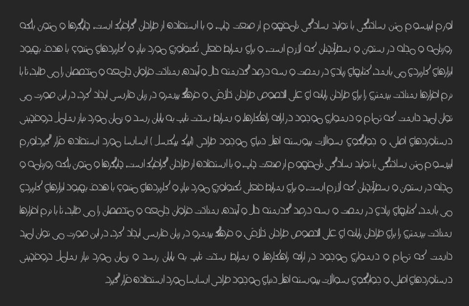 این فونت فارسی دارای خطوط منحنی و چیدمان دایره ای است که حس نرمی و حرفه ای را به طرح ها می افزاید. مناسب برای لوگوتایپ، بنرهای دیجیتال و حتی استفاده در وبسایت ها . برخلاف برخی فونتهای فانتزی، وایبز توازن خوبی بین خلاقیت و خوانایی دارد و در اندازه های مختلف بدون افت کیفیت نمایش داده میشود