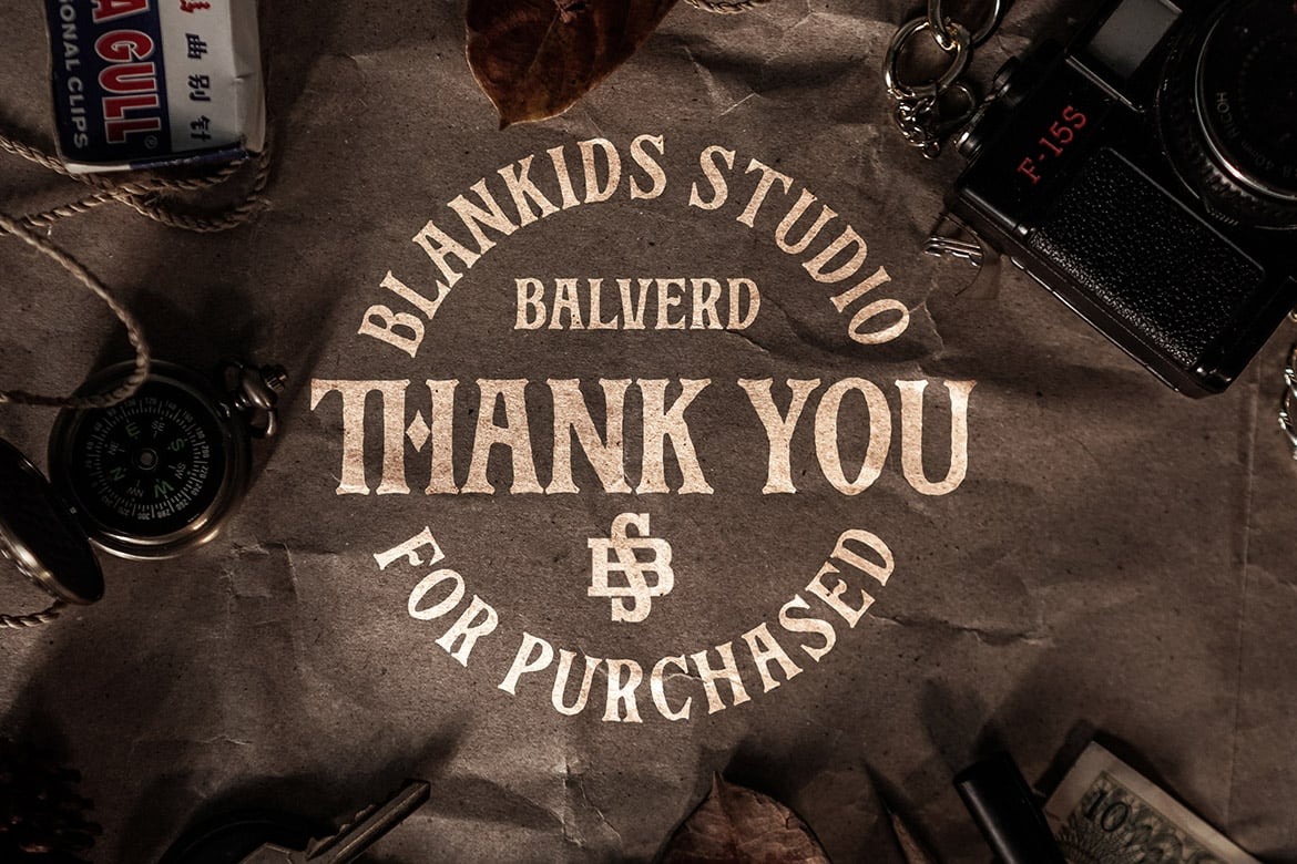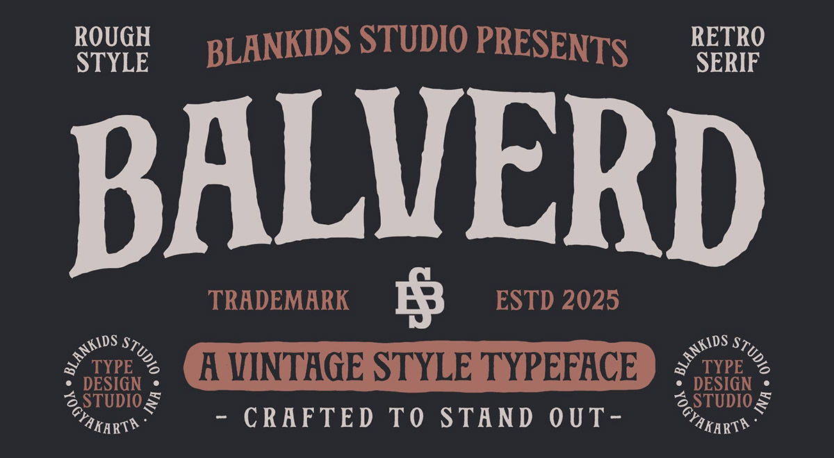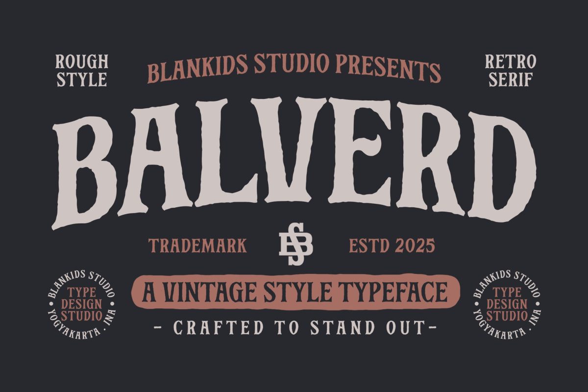 فونت Balverd، یک تایپ فیس سریف با سبک وینتج است که توسط Blankids Studio طراحی شده است. این قلم برای پروژه های برندینگ حرفه ای مانند لوگوتایپ، واترمارک، پوستر، بسته بندی محصول و تبلیغات ایده آل است. Balverd شامل مجموعه ای کامل از حروف بزرگ و کوچک، اعداد و علائم نگارشی با طراحی وینتج است که در فرمت های OTF و TTF عرضه می شود. این فونت از ویژگی های OpenType پشتیبانی می کند و با نرم افزارهای گرافیکی متعددی از جمله Canva، Adobe Illustrator، Photoshop، InDesign و Corel Draw سازگار است. Balverd همچنین از طیف وسیعی از زبان ها پشتیبانی می کند و برای هر اندازه ای بهینه است.