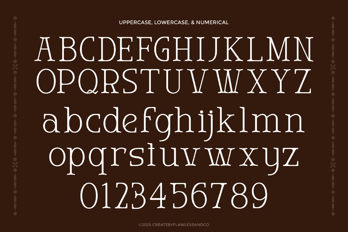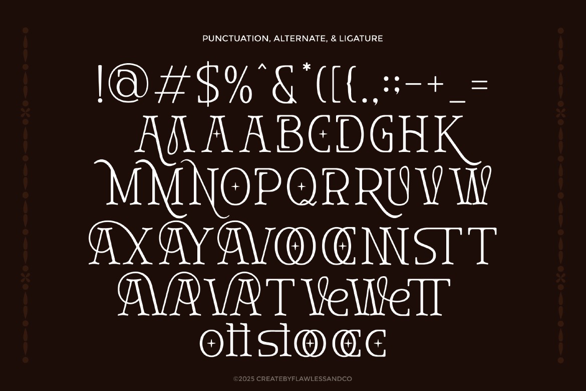 دانلوداین فونت به گونه ای طراحی شده که در کاربردهایی مانند برندینگ وینتج (Vintage Branding)، طرح بندی های سرمقاله (Editorial Layouts)، طراحی بسته بندی (Packaging) و تابلوها (Signage) برجسته باشد. Kavaroom جذابیت گذشته را با پیچیدگی مدرن ترکیب می کند. فاصله گذاری گسترده (Wide Spacing)، جایگزین های تزئینی (Ornamental Alternates) و لمس های ظریف دکوراتیو، به این فونت شخصیتی جاودانه می بخشند که هر ترکیب بصری را ارتقا می دهد.