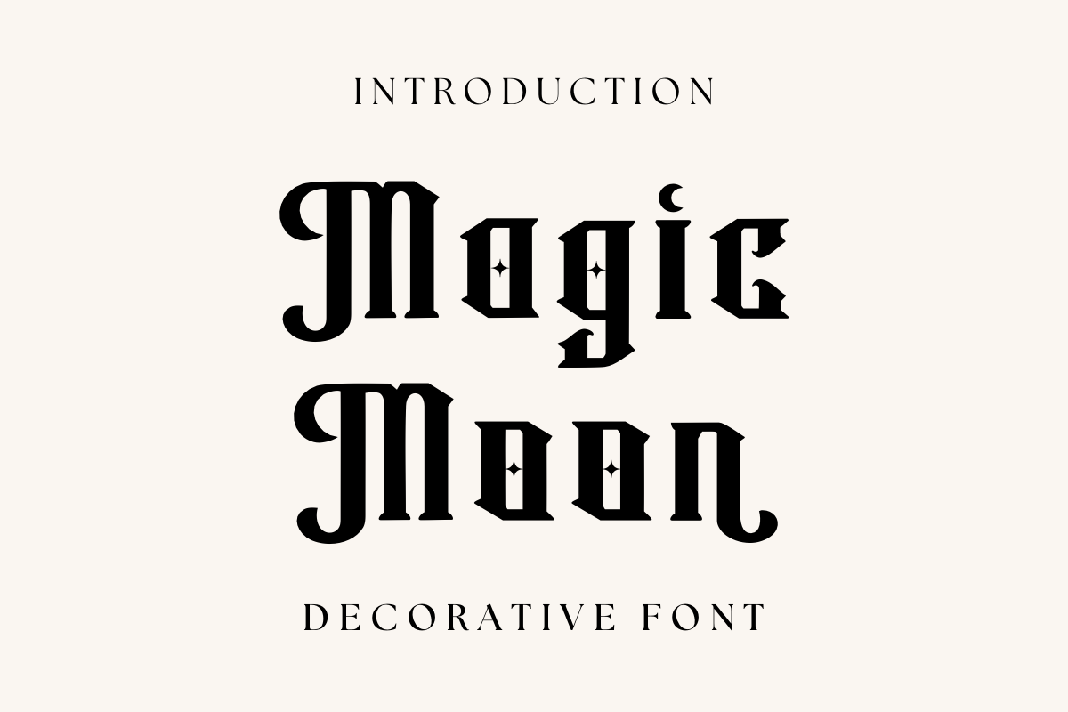 فونت Magic Moon با ظاهر خاص و تزئینی خود، برای طیف وسیعی از پروژه های بصری در محیط های چاپی و دیجیتال مناسب است: