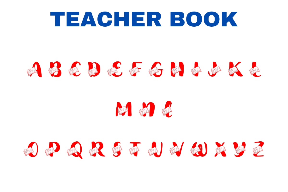 دانلود رایگان فونت Teacher Book یک تایپ فیس تزئینی (Decorative Font) است که با لمس ظریف و توجه به جزئیات طراحی شده تا به هر طرحی روح ببخشد، به ویژه آن هایی که با مضمون آموزش و کتاب ارتباط دارند.