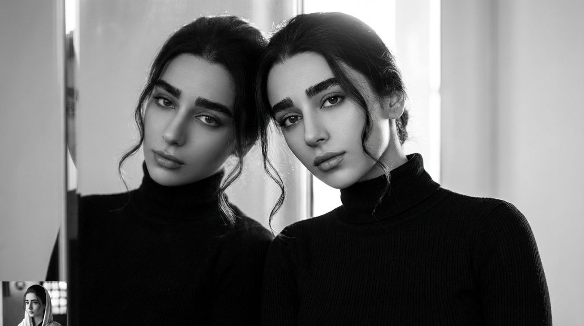 دانلود پرامپت ساخت پرتره سیاهوسفید هنری با انعکاس در آینه