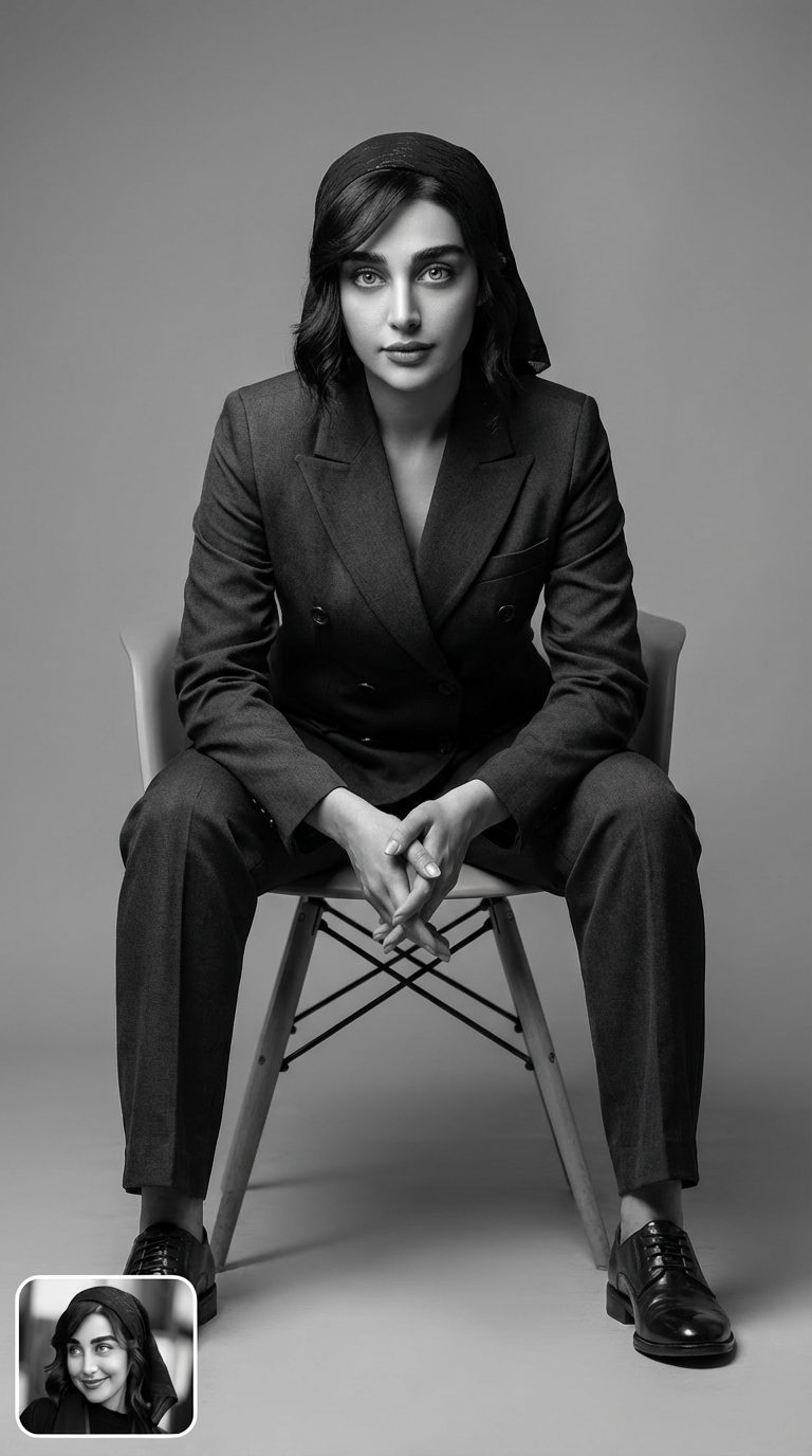 زیبایی این پرامپت در سادگی و نتیجه بخشی آن است. به جای صرف ساعت ها وقت برای توضیح جزئیات فنی، شما روی “حس” تصویر تمرکز می کنید. نتیجه نهایی، یک پرتره سیاه و سفید هنری و تاثیرگذار است که حسی از جدیت، تمرکز و هوش را منتقل می کند؛ قابی که بیشتر از یک عکس، یک بیانیه است و برای پروفایل های حرفه ای، صفحات مدیریتی یا محتوای انگیزشی، ایده آل است.