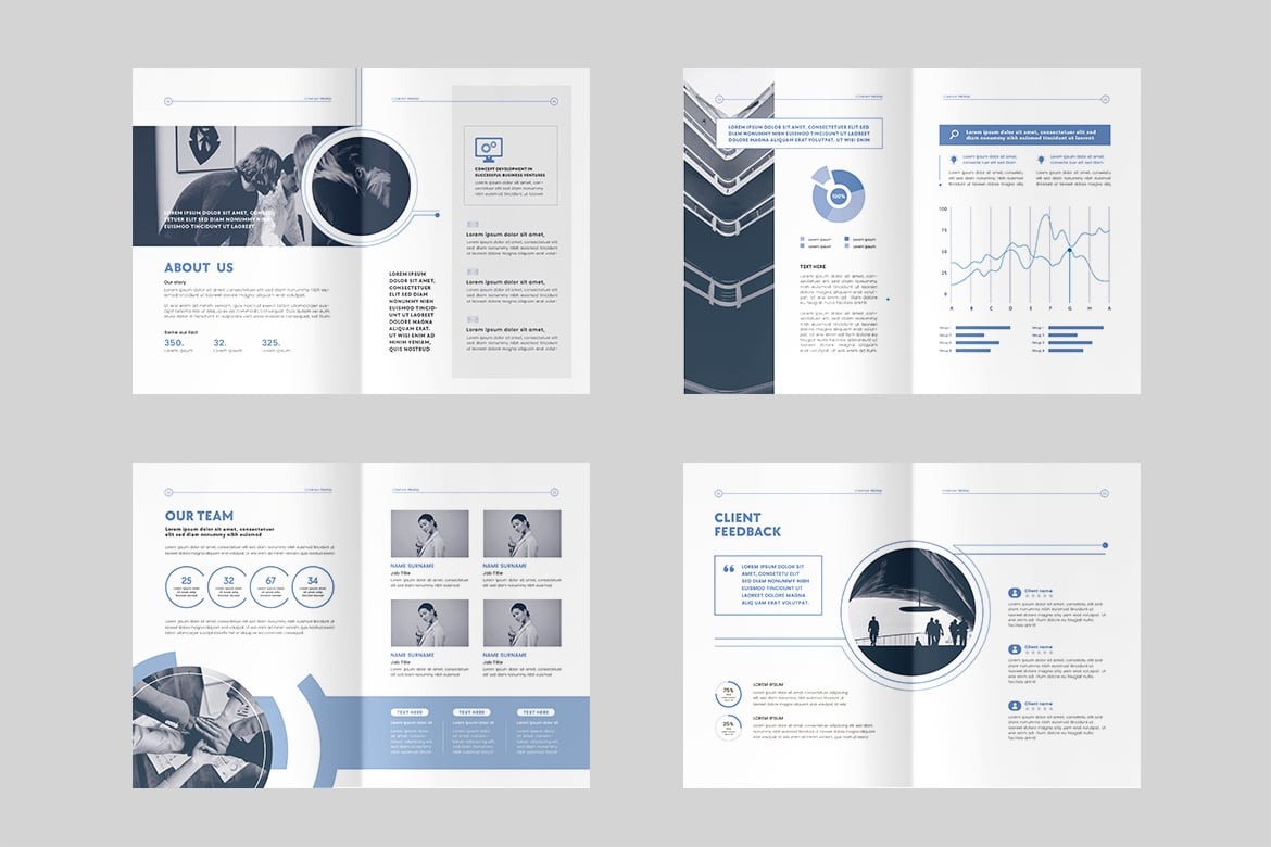 دانلوداین مجموعه ارزشمند شامل ۲۰ صفحه قالب آماده است که با چیدمانی مدرن و حرفه ای طراحی شده اند. رنگ بندی غالب در این طرح، سایه روشن های آبی و خاکستری روشن است که حس اعتماد، ثبات و تخصص را به مخاطب القا می کند. در تصاویر پیش نمایش، چیدمان صفحاتی با بخش های مختلف مانند معرفی شرکت، درباره ما، تیم ما، چشم انداز، فعالیت ها و بازخورد مشتریان دیده می شود. المان های بصری شامل نمودارها، اینفوگرافیک ها و تصاویر مدور هستند که به زیبایی اطلاعات را دسته بندی و ارائه می دهند. این کاتالوگ با ابعاد استاندارد (حدود ۲۱ در ۲۷.۹ سانتی متر یا همان اندازه جهانی Letter) طراحی شده و برای چاپ در چاپخانه های ایران کاملاً آماده است. فایل ها در نرم افزارهای تخصصی ادوبی فتوشاپ (PSD)، ادوبی ایلاستریتور (AI) و EPS به صورت کاملاً لایه باز ارائه شده اند. این ویژگی به شما این امکان را می دهد که به راحتی تمام جزئیات از جمله متن ها، رنگ ها، تصاویر و حتی چیدمان کلی را شخصی سازی کنید. با کیفیت چاپ ۳۰۰ نقطه در اینچ (DPI) و فضای رنگی CMYK، این کاتالوگ تضمین کننده خروجی بصری واضح و دقیق رنگ ها پس از چاپ است. این کاتالوگ معرفی شرکت، نسخه اصلی و به زبان انگلیسی است که به دلیل طراحی جهانی و حرفه ای خود، کمتر در ایران استفاده شده است. با فارسی سازی محتوا و استفاده از فونت های فارسی سایت اپیک پیکسل، می توانید اولین نفری باشید که از این طراحی منحصر به فرد برای معرفی شرکت خود در ایران بهره می برید.