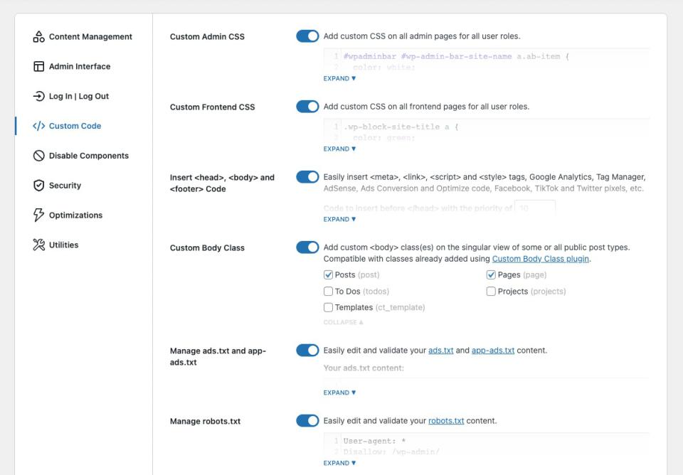 ASE Pro مجموعهای از ابزارهای قدرتمند را برای سادهسازی و بهینهسازی مدیریت و عملکرد وبسایت وردپرسی شما ارائه میدهد. این افزونه شامل قابلیتهایی مانند: