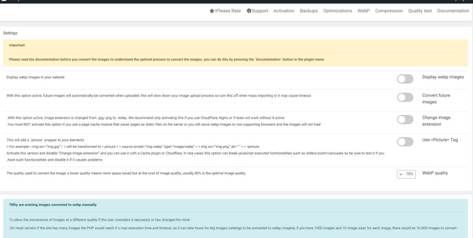 - پشتیبانی از فرمت WebP: این فرمت جدید گوگل، کیفیت بالایی را در کنار حجم بسیار کم ارائه میدهد. Advanced Speed Optimizer این امکان را به شما میدهد تا تصاویر سایت خود را به فرمت WebP تبدیل کنید و بدین ترتیب، سرعت لود آنها را به طرز چشمگیری افزایش دهید.