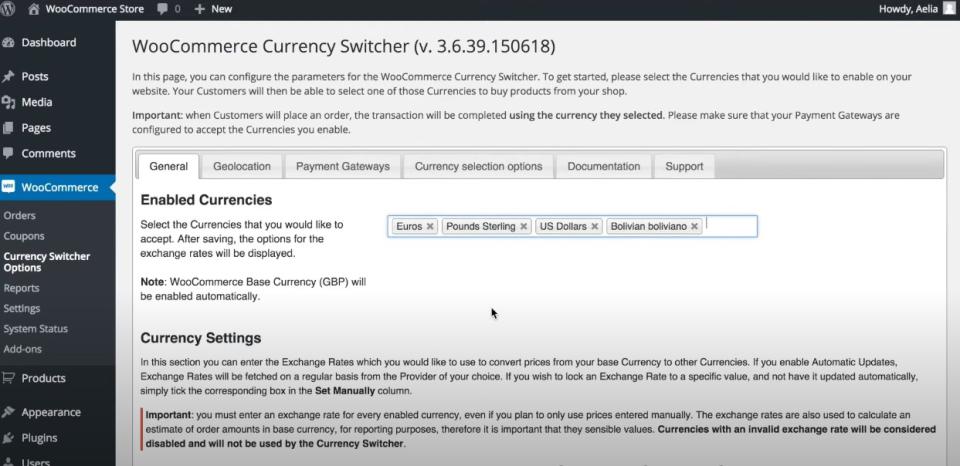 - می توانید از افزونه های الحاقی Aelia Currency Switcher برای اضافه کردن ویژگی های بیشتر مانند نمایش نرخ ارز به صورت زنده، پنهان کردن ارزهای خاص برای مکان های جغرافیایی خاص و موارد دیگر استفاده کنید.