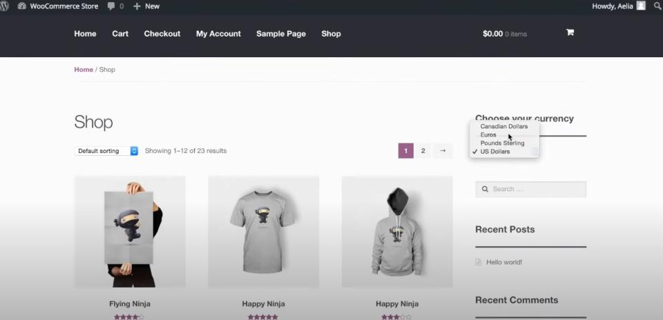 - به مشتریان اجازه دهید ارز ترجیحی خود را انتخاب کنند. Aelia Currency Switcher یک رابط کاربری بصری را ارائه می دهد که به مشتریان امکان می دهد به راحتی ارز مورد نظر خود را انتخاب کنند. این سطحی از کنترل را به آنها می دهد و تجربه خرید را برای آنها لذت بخش تر می کند.