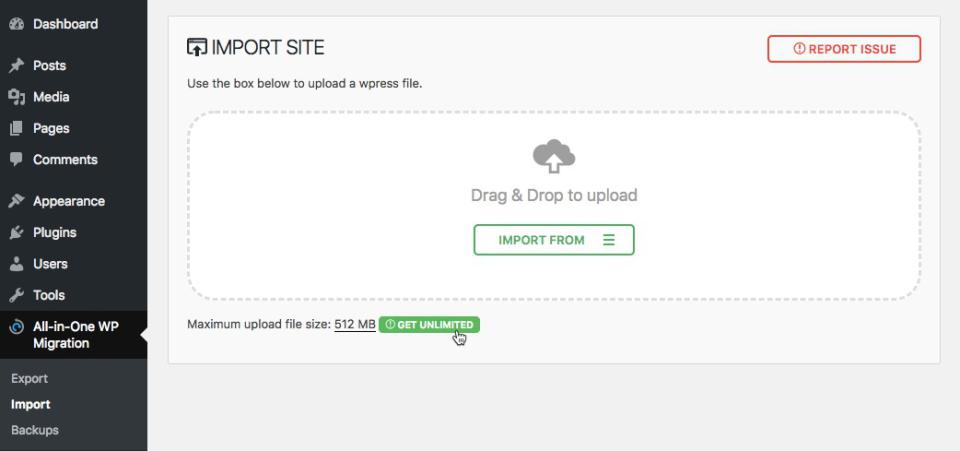 فرآیند مهاجرت وب سایت با All-in-One WP Migration Unlimited Extension بسیار ساده است. مراحل زیر را دنبال کنید:
