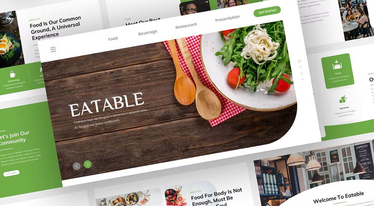 قالب پاورپوینت غذا ایتبل با رنگ سبز