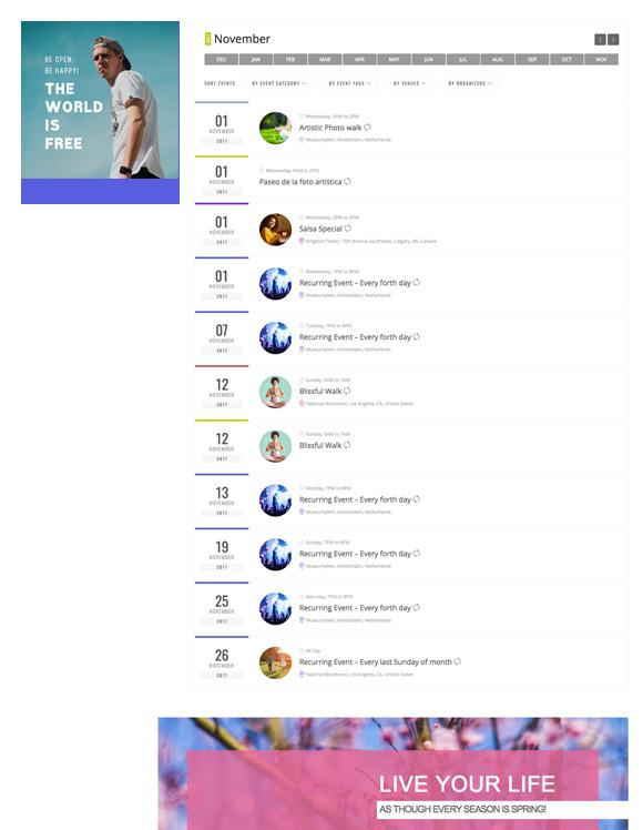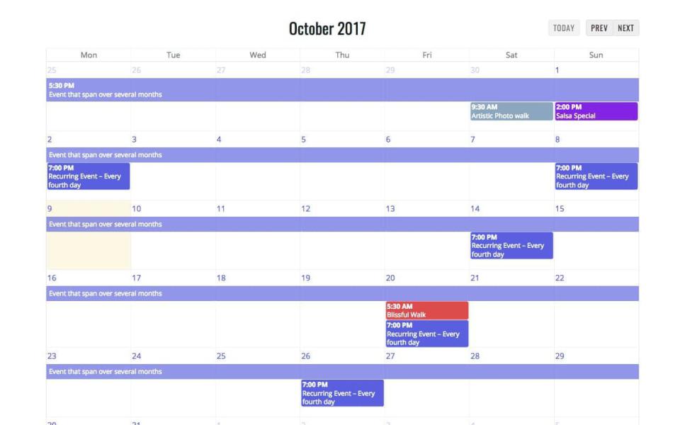 - تقویم رویدادهای زیبا: Eventer یک تقویم رویداد با قابلیت شخصیسازی بالا در اختیار شما قرار میدهد. این تقویم به بازدیدکنندگان شما این امکان را میدهد تا به راحتی رویدادهای آینده را مرور کرده و جزئیات آنها را مشاهده کنند.