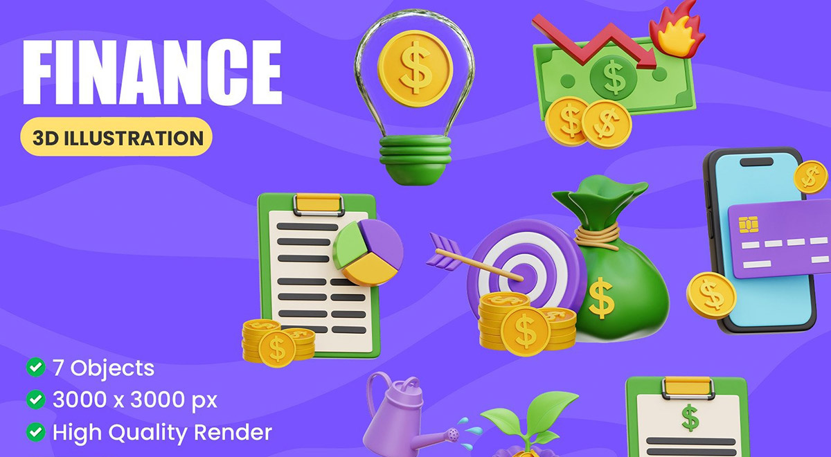۷ آیکن سه بعدی امور مالی: نمادهای بصری برای پروژه های مالی