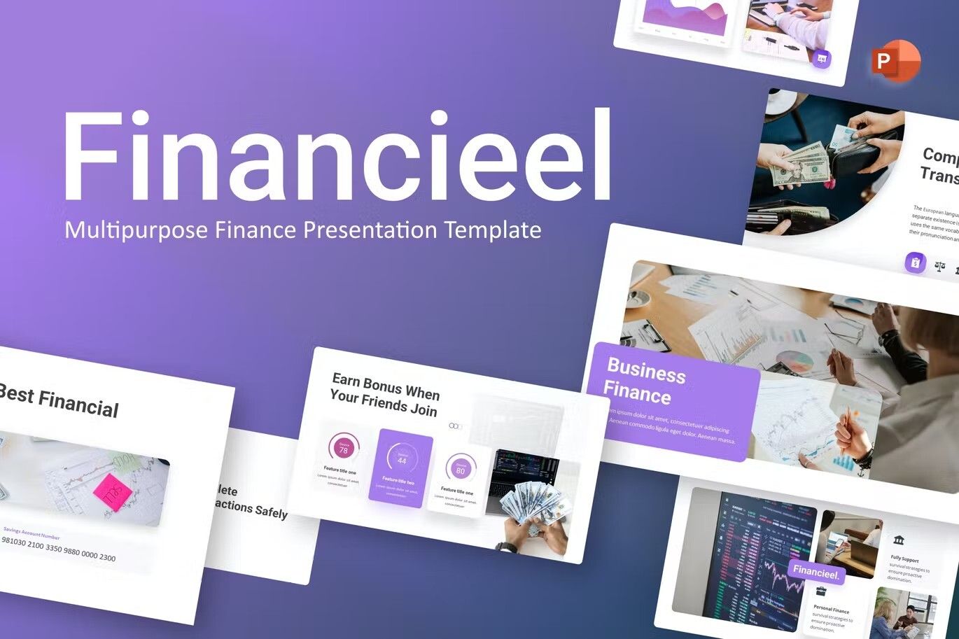 قالب پاورپوینت فاینانسیل با رنگبندی بنفش روشن