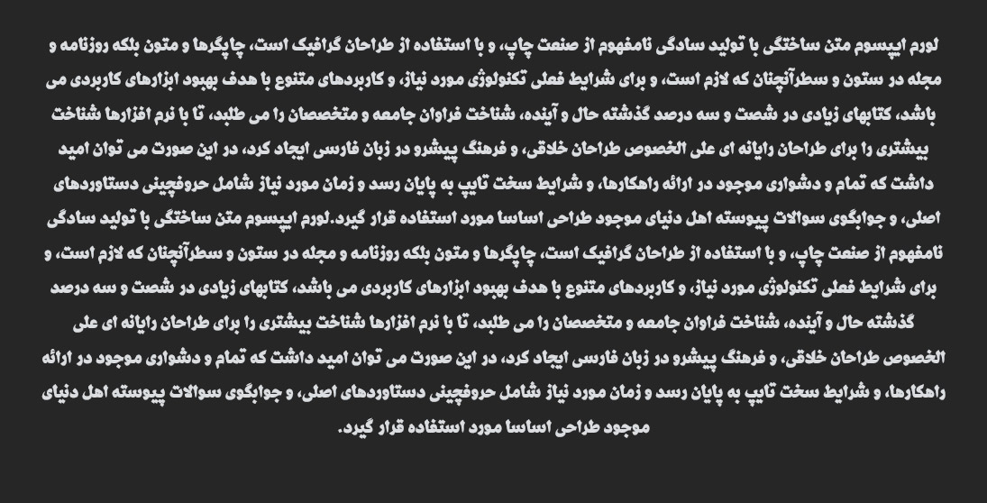 مناسب برای طراحی های گرافیکی و چاپ مانند لوگو تایپ، تایپوگرافی، بروشور، بنر، کارت ویزیت، جلد کتاب، پوستر و …