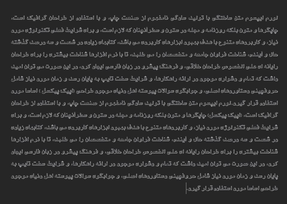 اگر به دنبال فونتی خاص و منحصربه فرد برای پروژه های طراحی خود هستید، فونت جراحی فارسی گزینه ای ایده آل است. این فونت با طراحی مدرن و ساختار هندسی دقیق، حسی از ظرافت و استحکام را به مخاطب القا می کند. خطوط این فونت به گونه ای طراحی شده اند که هم در اندازه های بزرگ و هم در متون کوتاه، خوانایی بالایی داشته باشند و به همین دلیل، برای طراحی لوگو، عناوین، پوسترها و بسته بندی محصولات بسیار مناسب است.