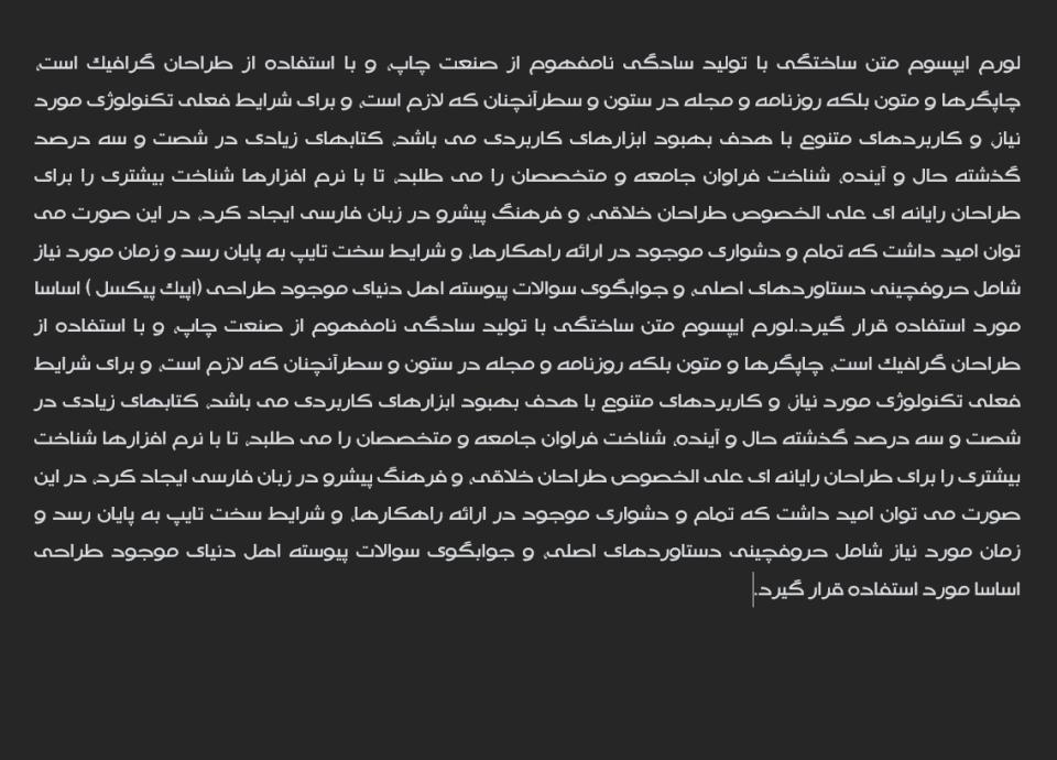 اگر به دنبال فونتی هستید که همزمان زیبایی، خوانایی و کارایی را در کنار رایگان بودن ارائه دهد، فونت فارسی جردن گزینه ای بی نظیر برای شما خواهد بود. این فونت با طراحی حرفه ای و ویژگی های منحصر به فرد خود، به پروژه های شما جلوه ای خاص می بخشد و تجربه کاربری بهتری را برای مخاطبانتان فراهم می کند.