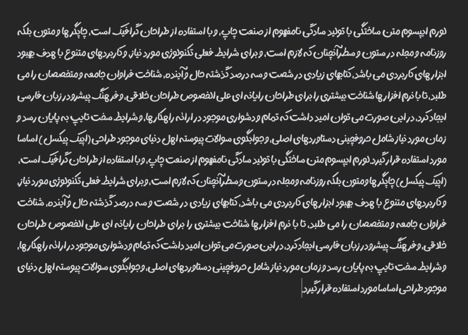 یکی از ویژگی های برجسته مدثی، خوانایی بالای اونه. با وجود ظاهر دست نویس، کلمات به راحتی قابل تشخیص هستن و چشم رو خسته نمی کنن. این ویژگی به خصوص برای استفاده در فضاهای مجازی و وبسایت ها خیلی مهمه، چون کاربر باید بتونه متن رو بدون مشکل بخونه. البته باید این نکته رو هم در نظر داشت که به دلیل ضخامت نسبی، شاید برای متن های خیلی ریز یا جاهایی که فضای محدودی دارین، بهترین گزینه نباشه.
