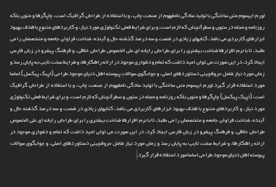دیما وب، علاوه بر ظاهر زیبا، به فکر کاربر هم بوده. فاصله گذاری مناسب بین حروف و کلمات، خستگی چشم رو کم می کنه و تجربه کاربری بهتری رو رقم می زنه. این فونت، تنوع زیادی هم در وزن ها و استایل ها داره، از خیلی نازک و ظریف گرفته تا خیلی ضخیم و پررنگ، که به شما اجازه میده به راحتی با هر نوع طراحی و سلیقه ای، هماهنگش کنید.