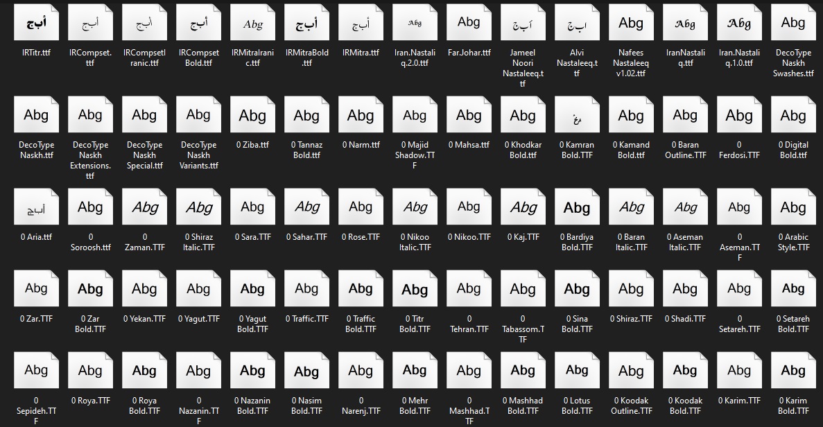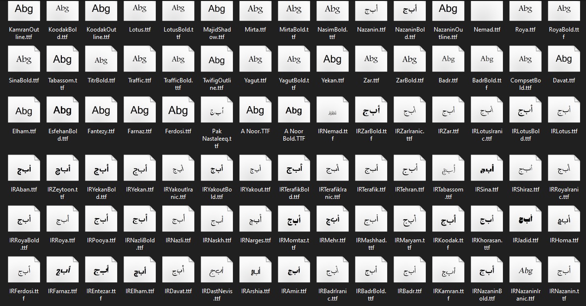 سازگاری و راهنمای نصب مجموعه فونت های فارسی