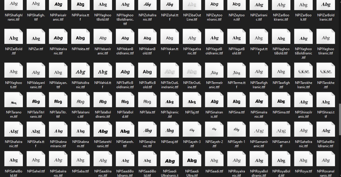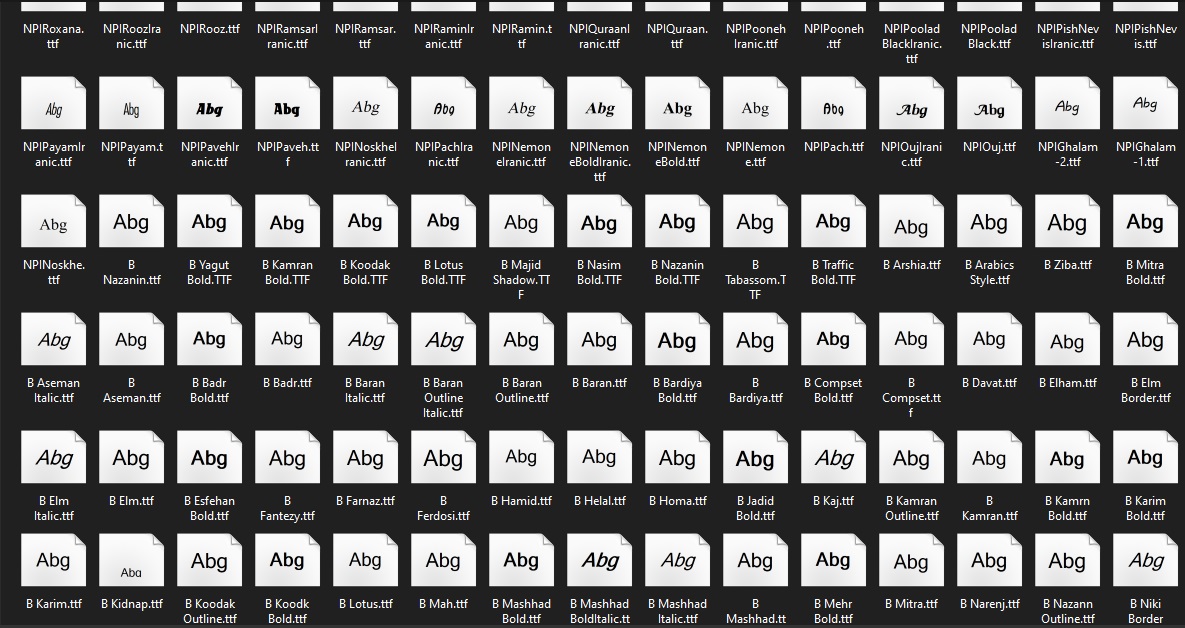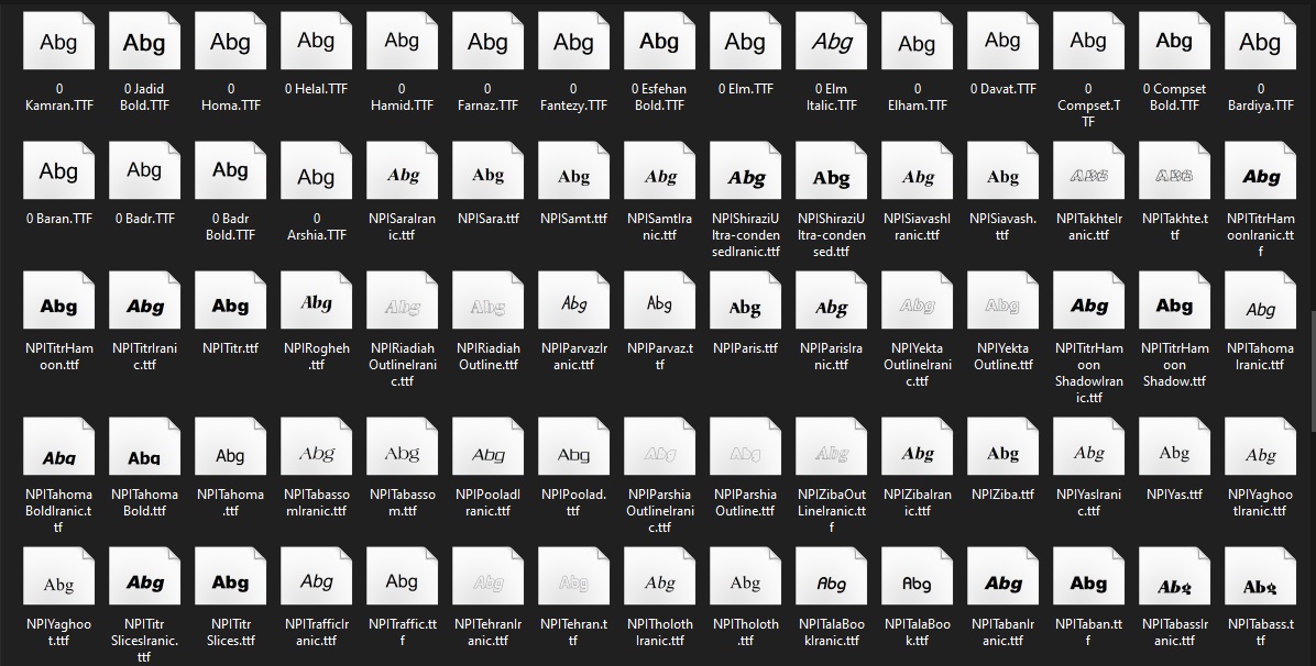 - ابتدا فایل فشرده دانلود شده را از حالت فشرده خارج کنید تا به فایل های فونت با پسوند