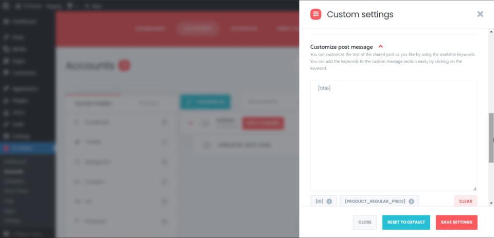 کار با FS Poster بسیار آسان است. پس از نصب و فعالسازی افزونه، میبایست حسابهای کاربری خود در شبکههای اجتماعی مختلف را به FS Poster متصل کنید. سپس میتوانید تنظیمات دلخواه برای هر شبکه اجتماعی را انجام دهید. این تنظیمات شامل موارد زیر میشوند: