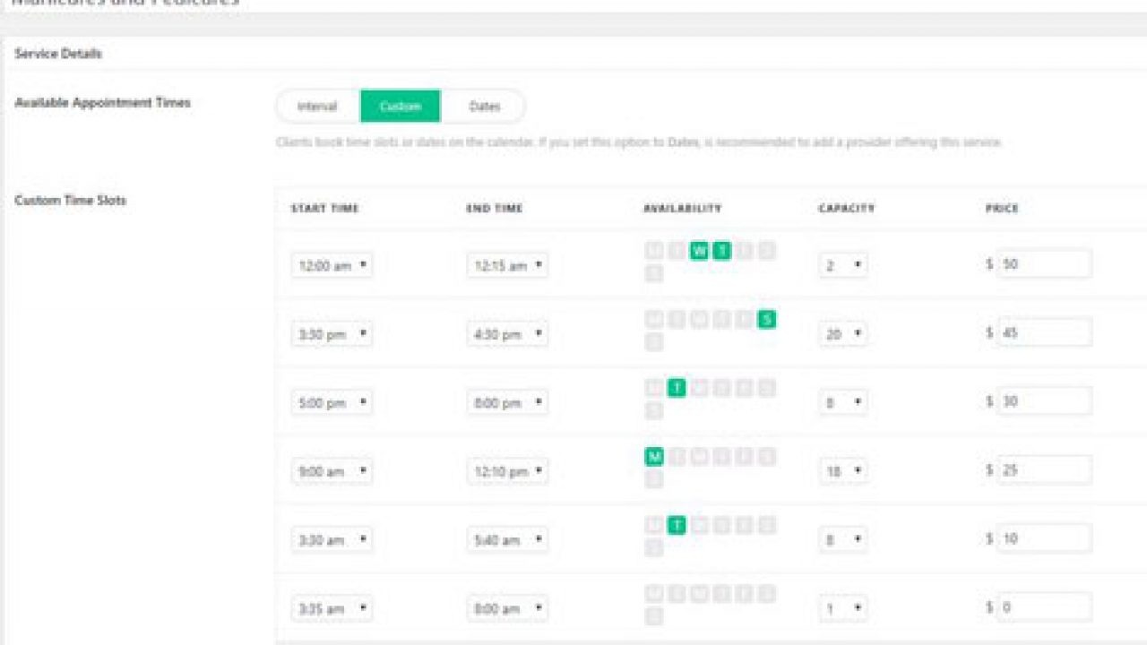 گزینه خدمات: قرار ملاقات ها را فقط در تاریخ های سفارشی برنامه ریزی کنید.