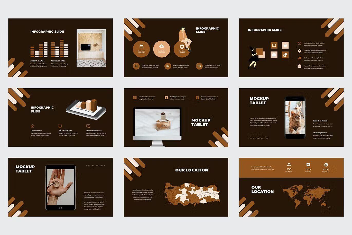 | ⭐ قابلیت ها | 2 حالت تیره (پشت زمینه قهه ای) و روشن (پشت زمینه سفید) بهمراه تعدادی آیکن در مجموعه همه عناصر، رنگ ها، اشکال و نمودارها را می توان به راحتی تغییر و ویرایش کرد جایگذاری تصاویر با کشیدن و رها کردن ویرایش آسان بهمراه فایل راهنما انگلیسی |