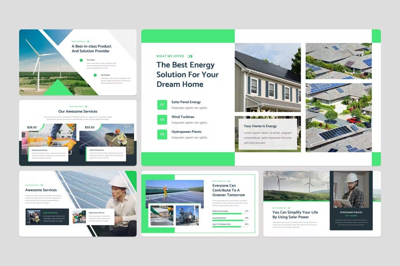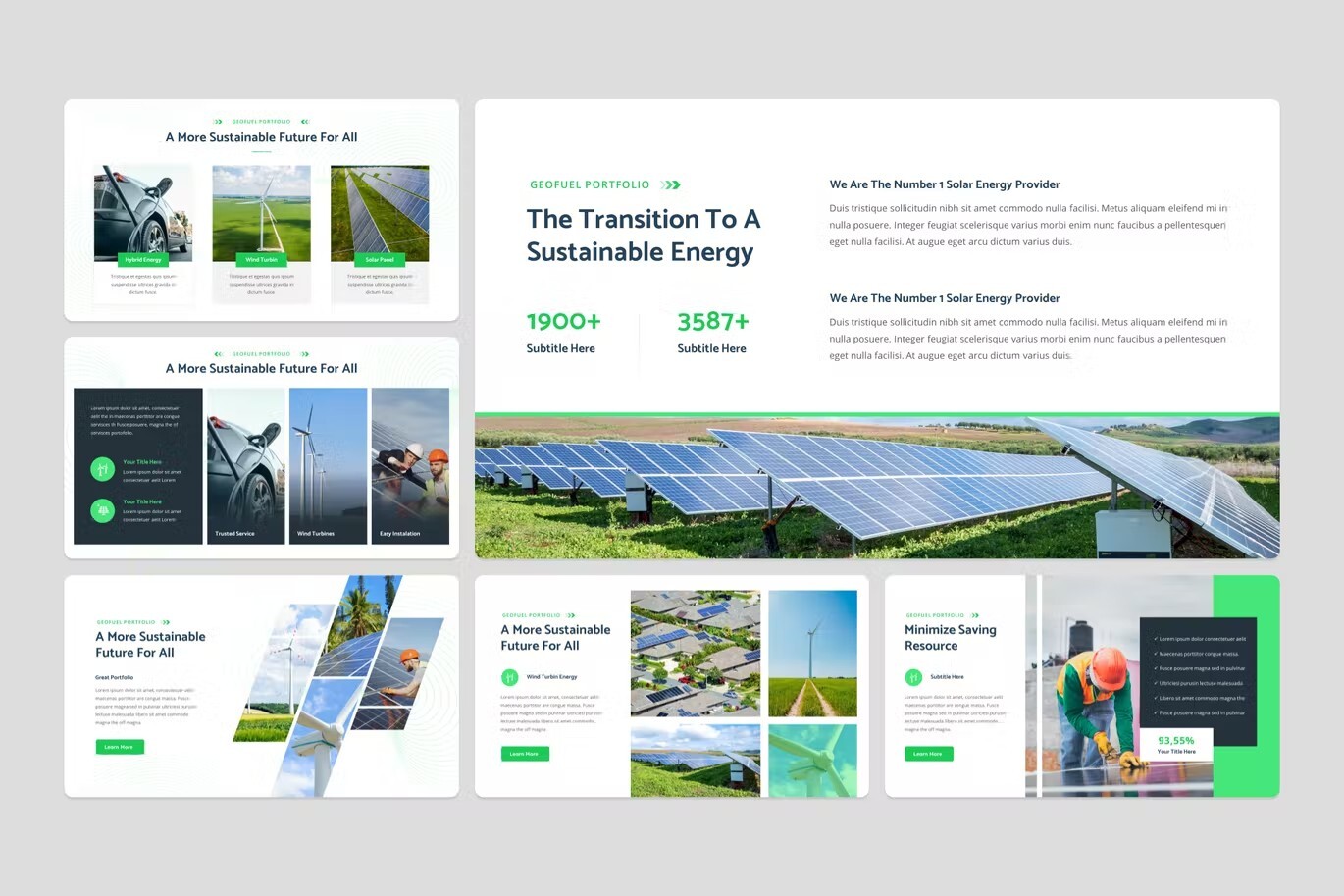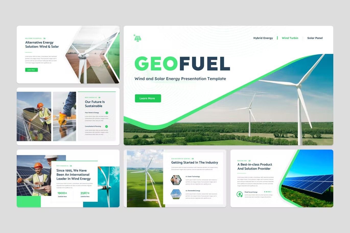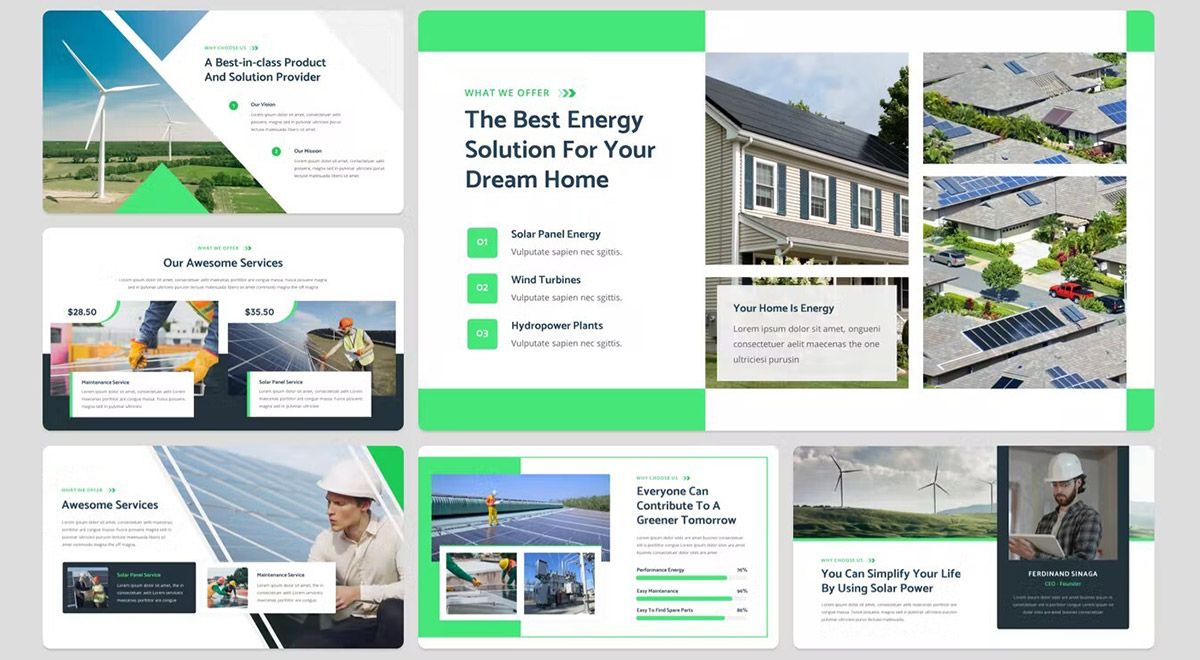 قالب پاورپوینت انرژی بادی و خورشیدی ژئوفول سبز و سفید