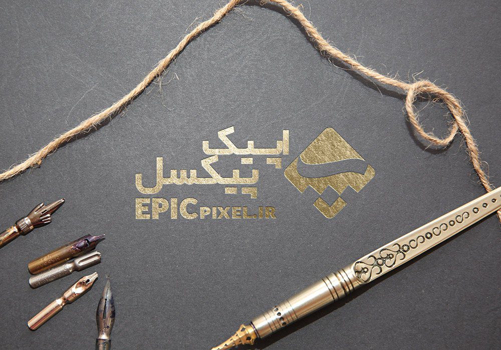 دانلود1 نظر برای موکاپ لوگو طلایی شیک با قلم فلزی طلایی روی زمین