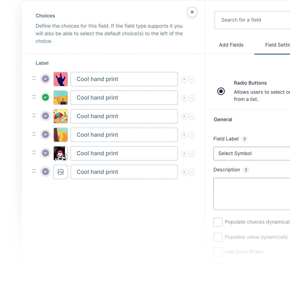 - حال میتوانید هنگام ساخت فرمهای جدید در Gravity Forms، از گزینههای تصویری برای فیلدهای مورد نظر خود استفاده نمایید.