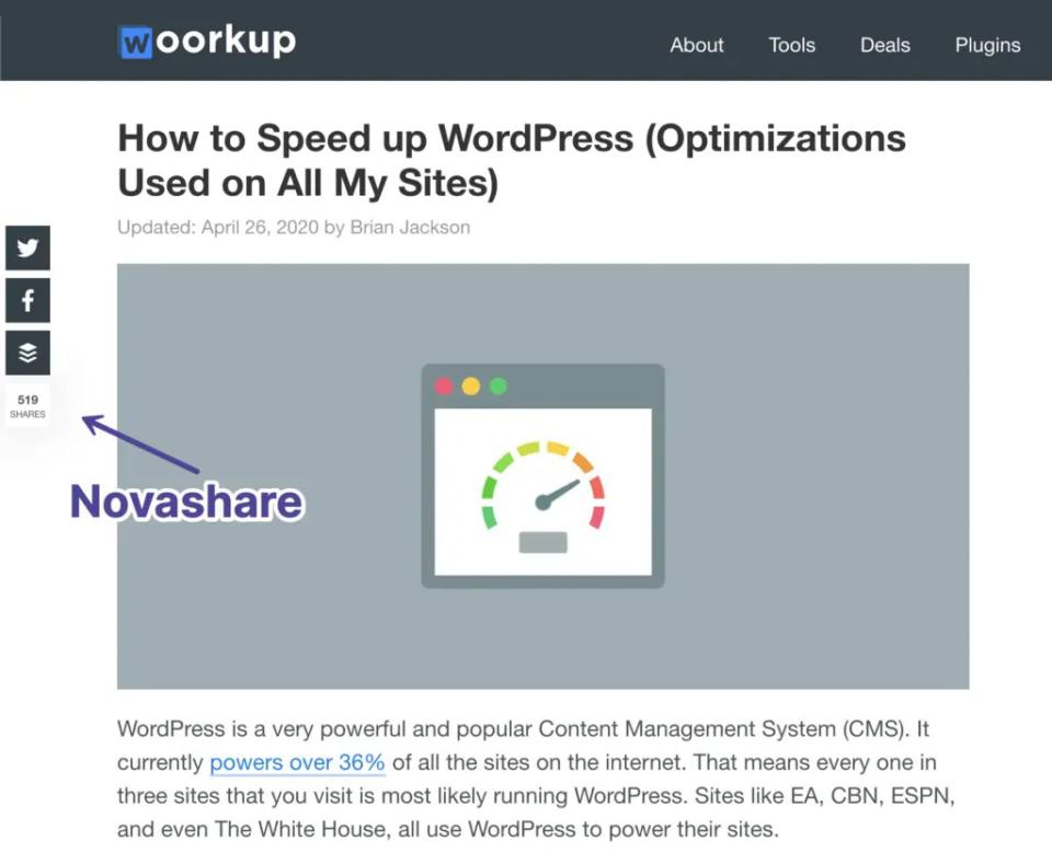 Novashare یک افزونه اشتراک گذاری اجتماعی برای وردپرس است که با در نظر گرفتن سرعت و کارایی ساخته شده است. این افزونه فوق العاده سبک است و از اسکریپت های غیر ضروری و کتابخانه های حجیم اجتناب می کند تا اطمینان حاصل شود که وب سایت شما همچنان با سرعت برق آسا بارگذاری می شود. اما Novashare فقط در مورد سرعت نیست. این افزونه همچنین دارای مجموعه ای از ویژگی های قدرتمند است که به شما کمک می کند تا به اشتراک گذاری محتوای خود در شبکه های اجتماعی تقویت ببخشید.