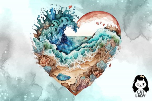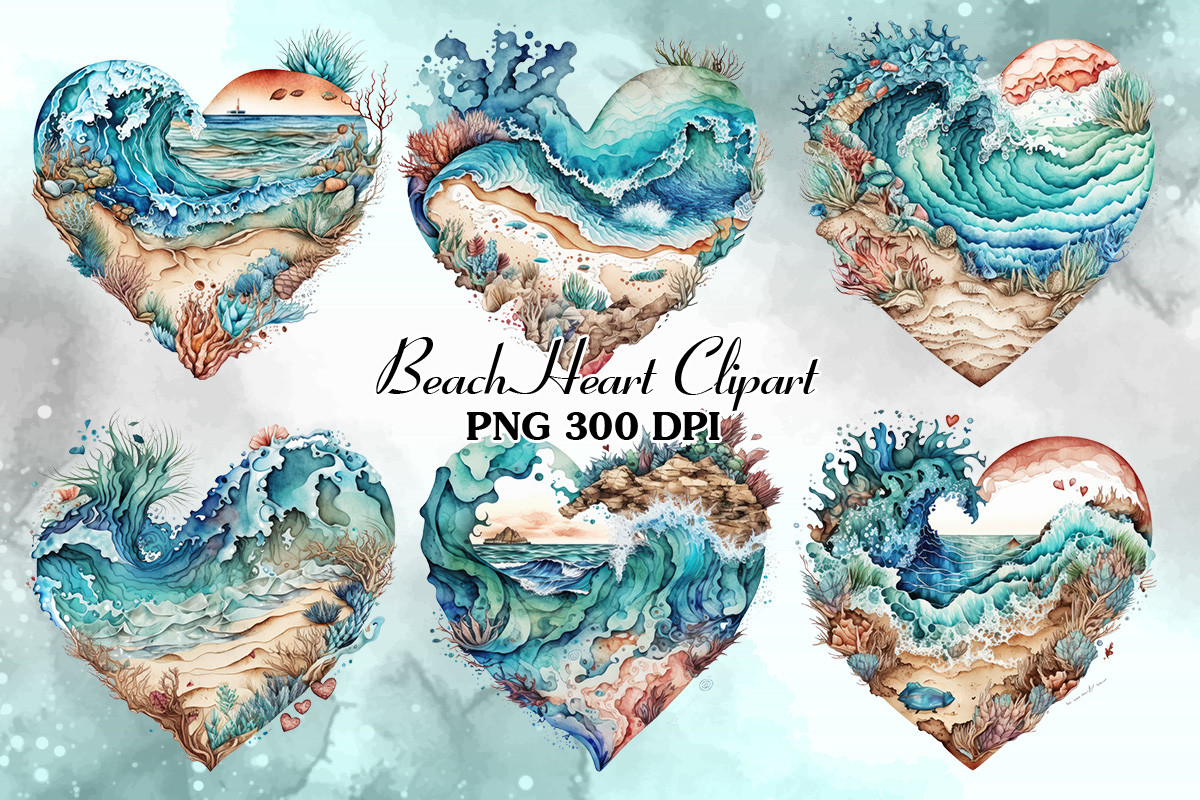 دانلود تصاویر بدون پشت زمینه و عکس باکیفیت قلب ساحلی آبرنگی |