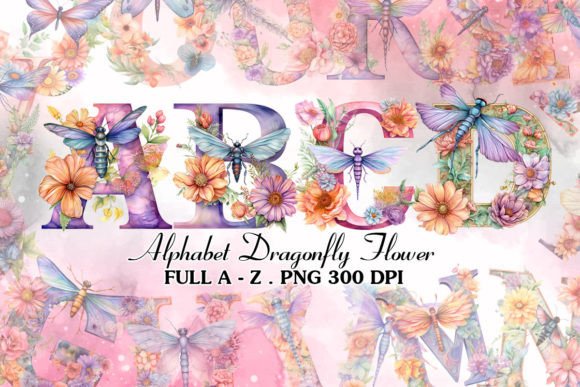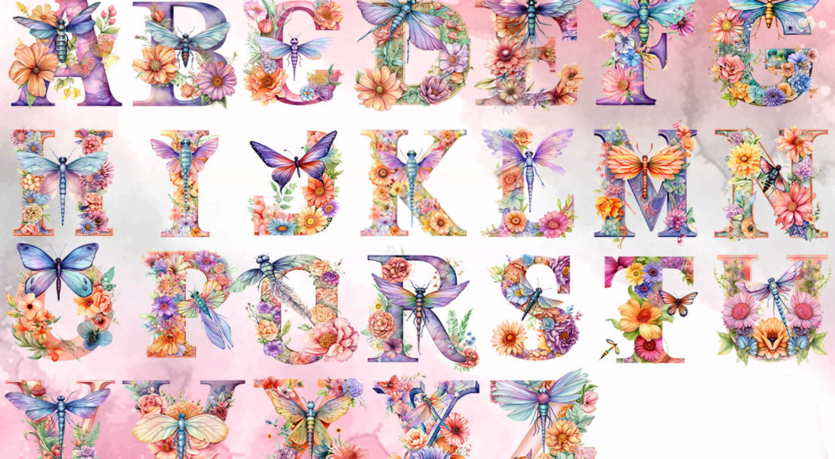 عکس های دوربری شده الفبای انگلیسی سنجاقک و گل