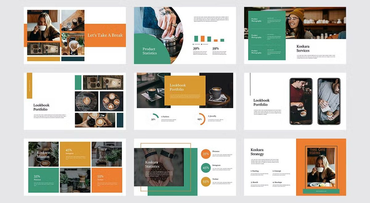 دانلود قالب پاورپوینت (Powerpoint) کسکارا سبز و نارنجی |