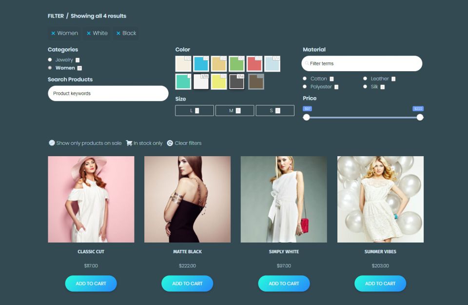 نمایش نتایج زیبا: فیلترها را می توان به صورت دلخواه و با ظاهری زیبا در فروشگاه شما نمایش داد.