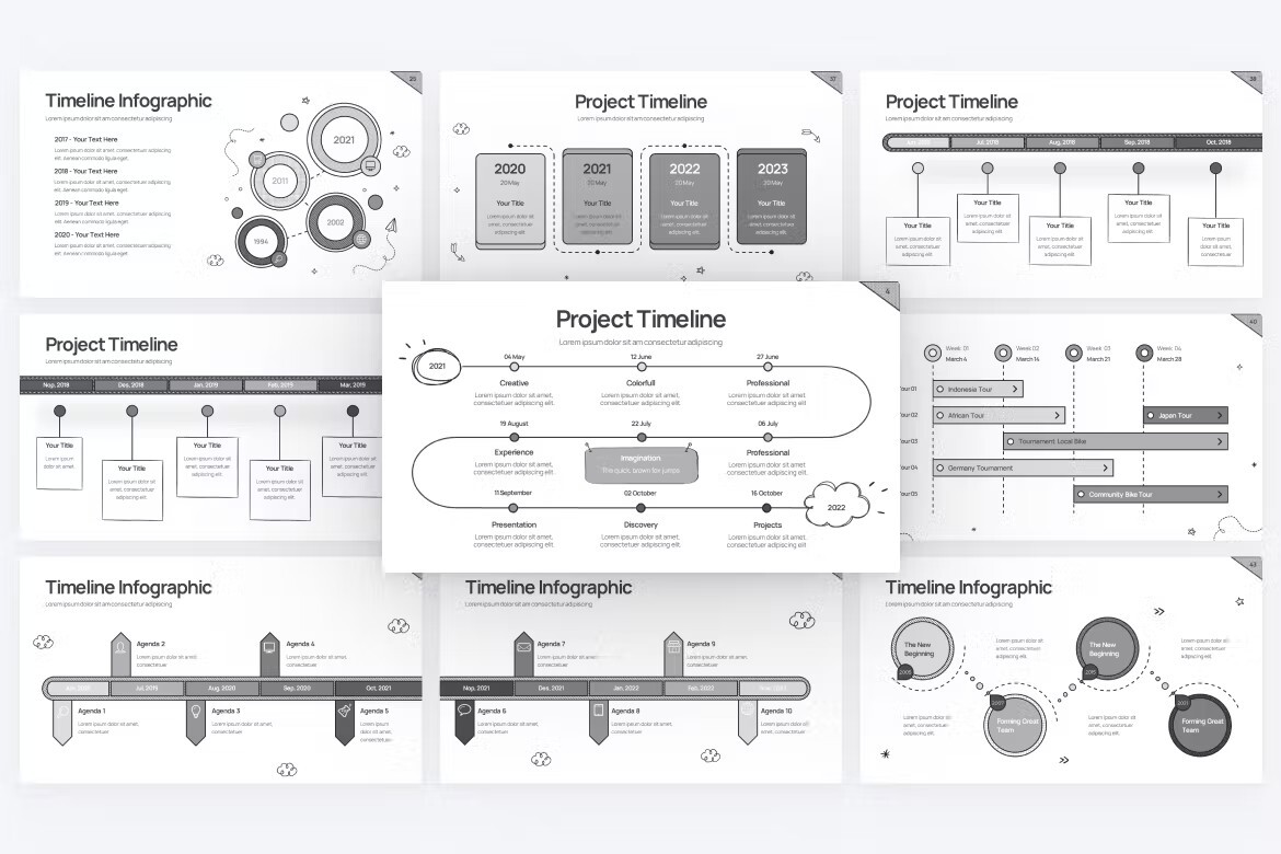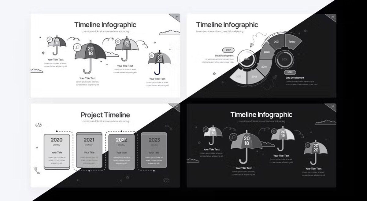 دانلود قالب پاورپوینت (Powerpoint) اینفوگرافیک جدول زمانی پروژه سیاه سفید |