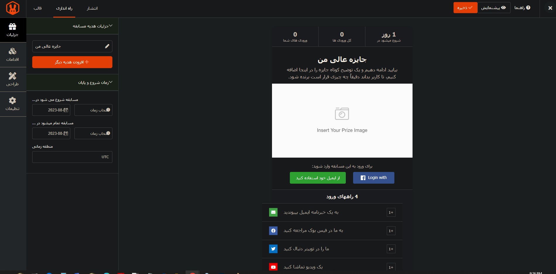 Success Redirect: در این بخش، شما میتوانید به بازدیدکنندگان یک پیام موفقیت زمانی که در هدیه شرکت کردند نشان دهید و یا آنها را به یک صفحه دیگر هدایت کنید.