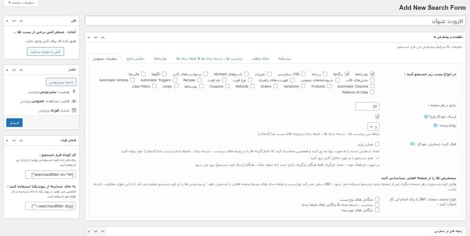 ایجاد فرم های جستجو در انواع پست ها، محصولات و یا هر نوع پست سفارشی دیگری: با استفاده از این افزونه می توانید فرم های جستجو را در هر نقطه از وب سایت خود ایجاد کنید.