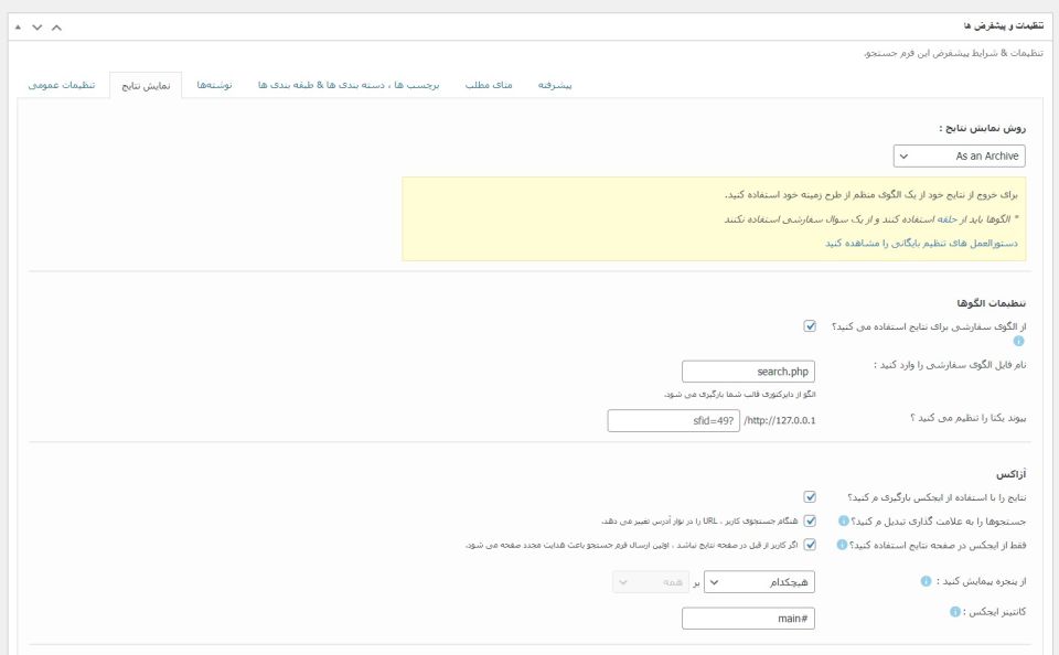 ایجاد فرم های جستجوی مختلف و نامحدود با هر تعداد صفحه نتیجه: با استفاده از این افزونه می توانید فرم های جستجوی مختلف و نامحدودی را با هر تعداد صفحه نتیجه ایجاد کنید.