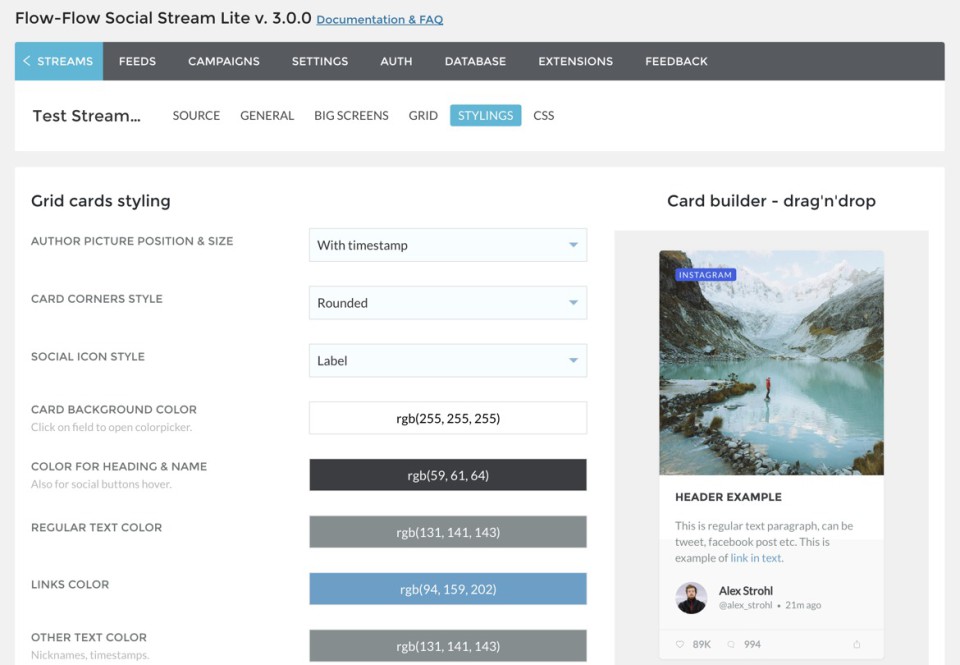 Flow-Flow Social Feed Stream Pro مملو از ویژگی های قدرتمندی است که به شما امکان می دهد فیدهای خود را کاملاً سفارشی کنید. برخی از برجسته ترین موارد عبارتند از: