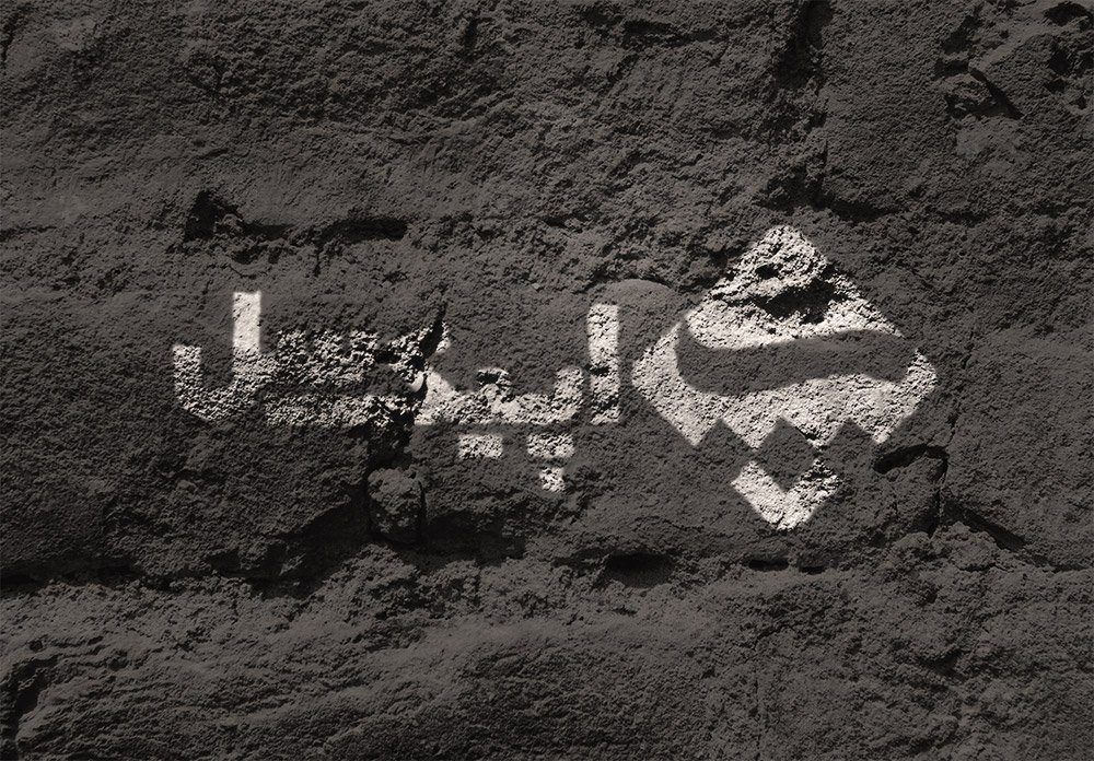 موکاپ لوگو رنگ سفید روی دیوار کاهگلی