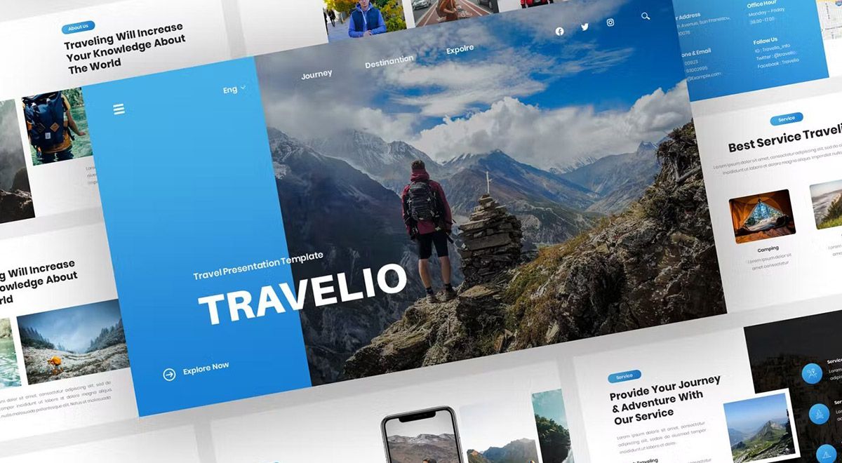 قالب پاورپوینت مسافرت تراولو با رنگ آبی