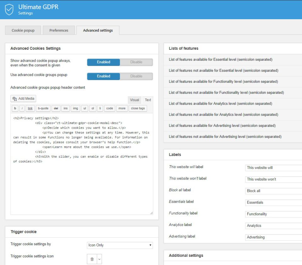 ویژگی های کلیدی Ultimate GDPR & CCPA