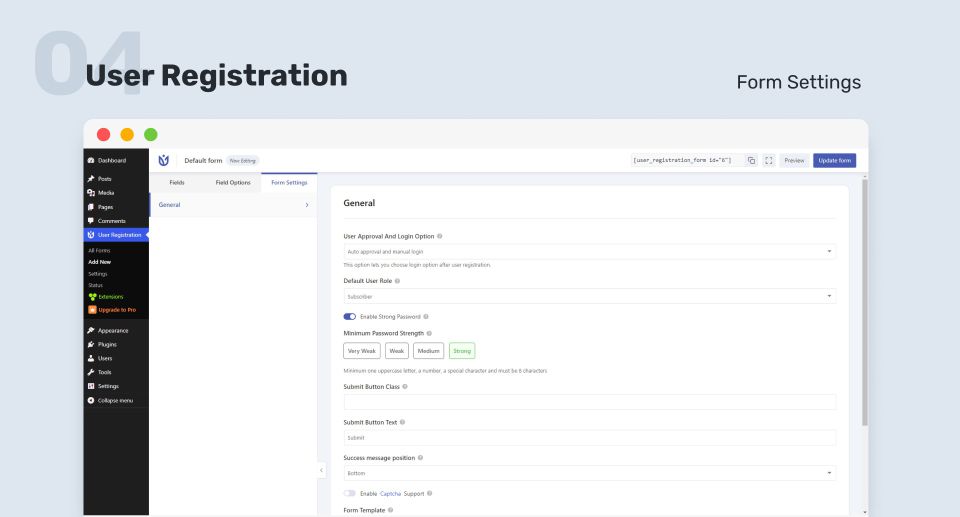 فرمهای ثبتنام جذاب و کارآمد با User Registration Pro! بدون نیاز به کدنویسی، فرمهای دلخواه خود را بسازید و کاربران را مجذوب سایتتان کنید.